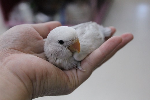 ホワイトだよ(^▽^)/ 鳥の事 2018年01月06日 あけましておめでとうございます、藤子です。 今年も宜しくお願い致します。 今年1発目の鳥・小動物ブログはこの子です(〃^-^)/ コザクラインコのホワイトフェイスさんです。 H29年11月生まれです。 美しい姿に成長しました ∩(´∀`)∩ワァイ♪ 全体的に白いですがおしりから尾羽とお腹が少し青みかかっています。 ちなみに幼い頃がコチラ 見事な成長をしましたね! この子はとてもなれていてナデナデがだいすきです(•ᴗ•)♡ その証拠に… ニギニギされても大人しいです。 もう少しでニギコロが出来そうです!! スタッフ藤子もオススメな子です。 ホワイトフェイスさん以外にもたくさんの鳥さんがいます。 気になる方はぜひお店までお越しください。 ご来店をお待ちしております。 ではでは~(`・ω・´)/ [5回]PR