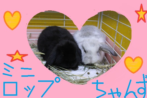 ロップちゃんず参上!! 小動物の事 2019年01月27日 皆さまこんにちは、藤子です。 最近とある実況者グループにハマってしまいまして… 色んな動画を夜な夜な見ております。 今日はウサギさんを紹介します。 では、いきます!! とても可愛いロップちゃん2匹来ました。 片方のお耳が立ってしまうこの子は、 ロップイヤーラビット。カラーがシルバーブロークン。 お耳は成長と共に垂れてきます。 少し驚いているこの子も ロップイヤーラビット。カラーがブラック。 まだ緊張気味です。 なかよしさんです( ´∀`)人(´∀` ) この子達はまだ幼いため店頭に出てませんが、 気になる方はお近くのスタッフまで!! お気軽にお声かけ下さい。 今日はここまで!! 気になる方は是非是非ご来店ください!! 心よりお待ちしております!! ~お知らせ①~ 2019年1月3日から営業時間が変更になりました。 10:00~19:00までになります。 お客様には大変ご不便おかけいたしますが何卒ご理解下さいますよう、 よろしくお願い申し上げます。 ~お知らせ②~ 2月6日(水)は社員研修により 臨時休業になります。 ご迷惑をお掛けしますが宜しくお願いします。 ではでは~(。・ω・。)ノ [2回]