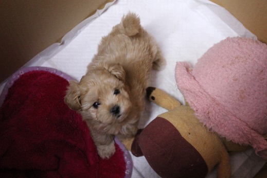 MIX犬(マルチーズ×プードル)、入舎!! 犬猫のこと 2017年11月23日 こんにちは、店長です。 先日、激かわぷりてぃわんこがやってきましたので 早速ご紹介しますヾ(´ρ`)ノ゛ワーイ 「マルチーズ×トイプードルMIX」の女の子ですス(*´Д`)萌 カラーは“アプリコット”で、H29.9/30生まれ 甘えん坊で、 とにいとにいちょっ〇ーのぬいぐるみが大のお気に入りです 親が共に2kg台なので、このコも大きくならなそうな感じですね まだ店頭に出ていないので、見てみたい方はお気軽にスタッフまで お声掛けください (Aさま、ぜひ会いにいらしてください) ~お知らせ~ 当店では、只今スタッフを募集しております!! ・生き物が大好きな方 ・一緒に楽しいお店作りをしてくれる方 ・長期で続けられる方 ・明るく元気な方 ※18~30歳くらいまで 未経験でも大丈夫です! ご応募お待ちしております。 それでは~ [5回]