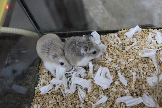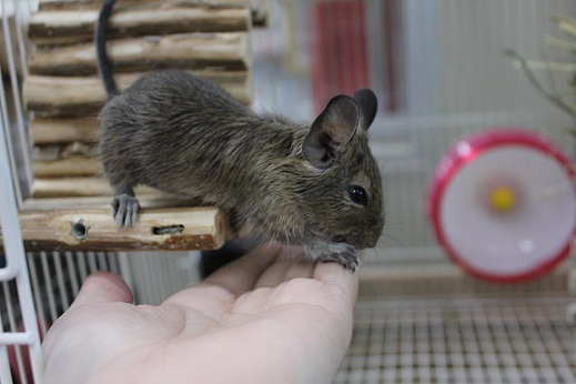 久々のねずみ達!! 小動物の事 2017年11月25日 皆さんこんにちは!藤子です。 今日は 久々に入荷したねずみさんを紹介します まずは… デグーの男の子です。H29・10月生まれ おめめパッチリで可愛いですよ 大きさは 、 少し分かりづらいですがまだまだおちびちゃんですね(´∀`) 少し甘噛みが下手ですが人が来ると興味津々で近づいてくるので おそらく慣れてくれると思います。 お次は… ロボロフスキーハムスターです。H29・9月生まれ 女の子2匹、男の子1匹の入荷になってます(写真は女の子です) ロボハムちゃんはほっぺがぷくぷくしてて可愛いですよね 紹介は以上となりますが とても良い表情の子がいたのでついでに少しご紹介します。 デグーとロボハムの写真を撮ってる後ろで…… フェレットのベビちゃん(1枚目男の子)と ミーちゃん(2枚目女の子)が気持ち良さそうに熟睡してましたww 2匹共とても慣れているので気になった方はぜひ当店へお越しください 皆様のご来店心よりお待ちしております。 ではでは~ [4回]PR