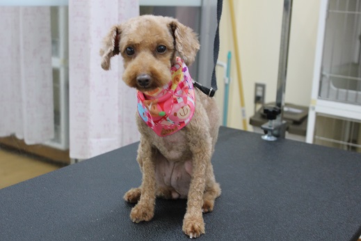 トリミングわんちゃんご紹介♪ トリミング 2017年09月09日 昨日、夕飯に「梨バー」1本喰らって力尽きました。 こんにちは、店長ですヾ(´ρ`)ノ゛ワーイ トリミングをご利用頂いたわんちゃんたちのご紹介です 「トイプードル」の“ももちゃん” 4月に当店でお迎え頂いたももちゃん 今回は、秋にむけてテディカットで とてもよく似合ってますネ 「トイプードル」の“ファラちゃん” 当店でラブラドールレトリバーとゴールデンレトリバーをお迎え頂いたお家の 一番先輩わんこのファラちゃん 大型わんこ2頭より強く一番威張っているそうです でも、トリミング中はとても良いコでした 「トイプードル」の“プッチくん” 超大ベテランのプッチくん 今回はいつものカット+お目々スッキリカットで いつもご利用ありがとうございます 「トイプードル赤い三連星」“ジェット○トリームアタック”の後は、 スタッフのわんこ「ビションフリーゼ」の“パウダーちゃん”で さようなら~ 皆様、ご利用誠にありがとうございます ご予約の際は、お気軽にお電話ください TEL:04-7153-8848 ペットのデパート東葛 流山店 ~9月のトリミングキャンペーン~ 9月にトリミングをご利用頂いたわんちゃんに 歯磨き用ガム「グリニーズ」をプレゼント致します トリミングで全身キレイになったついでに歯もキレイなっちゃいましょう ぜひぜひお試しください ※このキャンペーンは流山店のみのキャンペーンです。 他の店舗では行なっておりませんので、予めご了承ください。 それでは~ [6回]