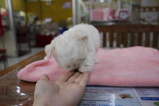 マワワ 犬猫のこと 2017年09月13日 こんにちは松っあんです もう9月も半ばですねぇ~。 まだまだ暑い日も続きますが、 涼しい日も増えてきて秋を感じます お店も少しだけ秋っぽく リクさんやうめちゃん、犬舎に紅葉やらイチョウらをお飾りしてみました。 ん??? うーちゃん・・・ 何してるの?笑 そんなこんなで、新しいワンコのご紹介イッキマース 白くてフワフワ、天使のような笑顔 目と鼻が同じ大きさでまるで黒豆3つ。笑 種類は、 マルチーズ×チワワのミックスさん、女の子です 仮名はもちろん・・・・・「マワワ」に決定! 僭越ながら松っあんが決めさせていただきましたが、 だんだんネーミングセンスが店長に似てきた・・・気がする・・・ 横顔も美人さん 見た目は今のところマルチーズよりかな? 性格はどっちにも似たり寄ったり・・・とっても明るい性格です! 今後の成長が楽しみですね 後ろからの図。 分かりにくいですが、耳と背中が少しクリームかかってます。 まだまだおちびさんですが、 なんちゃってお手ができます そのあとカプカプされますが笑 からの~~~ てへぺろ めちゃくちゃ可愛いです 犬舎デビューはまだですが、おさわりできますよー! 笑顔でお待ちしてます 今日もまた新しいワンコがやってきました! その紹介は後日。お楽しみに [9回]