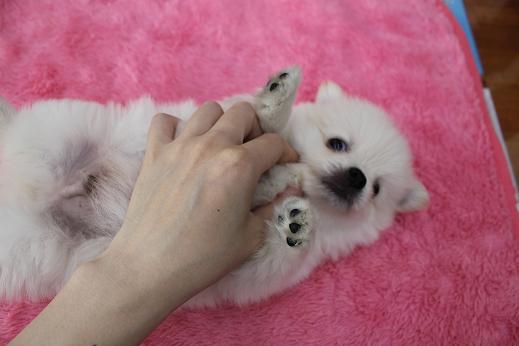 チメラニアン 犬猫のこと 2017年08月23日 こんにちは 最近、ショートボブの髪に縮毛矯正をかけたところ、 「ブルゾンちえみ」そっくりになってしまいました ブルゾン大佐松っあんです そんな、密かに店長とコバリ・レイをwith Bとして巻き込もうと企んでいる もうすぐ20代最後の歳を迎える三十路おばさんは 1人で「35億」と言わせておいて・・・ 月曜日にやってきました! たぶん、今話題の上野のパンダの赤ちゃんよりも かわいいんじゃないかと思ってしまうほどの期待の新犬です。 このモコモコなフォルム。 ちょっと短め?な愛くるしいシッポ。 耳は若干寝ています。 目はクリクリ、鼻は黒。 さぁて、何の種類かお分かりですか? ちなみにミックス犬です。 私は朝、店長に 「チメラニアン見た?」 と聞かれ、なんのことだかさっぱりでした。 チメラニアン。 ピンっときた方は店長と気が合うかも?!笑 正解は、チワワ×ポメラニアンのミックスでした クリームカラーの男の子です。(H29.6.28生) 性格はとっても甘ったれ。 ちょっと目が合っただけでキュンキュン鳴いちゃいます 見た目も性格も今のところポメ寄りですかね? 名前からして「メラニアン」が強いから・・・笑 横顔も整っててイケメン 将来が楽しみですね! ゴローンと寝かせると嬉しそうにワチャワチャします。 あ、可愛いポイント発見! ブレててわかりづらいですが、肉球がブラック そんな見た目も性格も可愛い、ちめたん。 まだ裏で待機してますが、いつでも抱っこOKです。 ぜひ、お声がけくださいませ [7回]