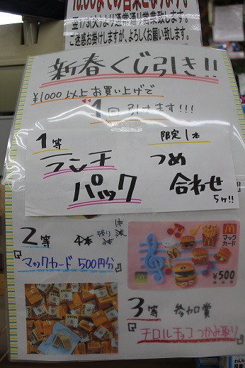 新春くじ! お店のこと 2017年01月02日 こんにちは松っあんです あけましておめでとうございます! みなさん、お正月をいかがお過ごしですか? 松っあんはありがたいことに元日にお休みを頂き、 新年早々、映画を見に行ってきました! ファーストデイだから1100円 映画は福士君が出演している 「ぼくは明日、昨日のきみとデートする」 原作を4回も読んでいるぐらいファンなので、 「この小説、絶対映像化したほうがいい!」って思ってたので、 福士君、小松さんといった美男美女に演じてもらえて満足でした 内容も原作にほぼ忠実に再現されてたし、 エンディングのback numberの歌も切なくて涙をそそられます 気になる方はぜひ見に行ってみてください! 前置きが長くなりました 本題は、新春くじ引きです! 松っあんが昨日休んでるうちに 1等のハーゲンダッツ券 2等のマックカード 3本 早々と当たってしまったみたいです! 当たったお客様、おめでとうございます 3日までのくじなのにチロルチョコしか残っていない・・・。 なので、追加で用意しました! 1等 ランチパック盛り合わせ 1セット 店長がどうしてもというので。 さっきからランチパックのニオイを嗅いでます。笑 知っている方はクスッと笑って流してください。笑 2等 お菓子詰め合わせ 4パック3パック (たった今1つ当たりました!) お菓子のほかにミニカップめん付きです! 3等 きなこもちチロル 見えにくいですがまだまだたくさんあります! 3日以降残ってしまうとすべて スタッフのお腹の中に納まってしまいます! それか・・・ 食いしん坊らぶおぢさんに暴食されてしまいます笑 皆さん、頑張って1等当ててくださいね ~お知らせ その1~ ★年始の営業時間★1月1日・1月2日はいつもより2時間早く 18時閉店になります。 1月3日から通常通り、20時までの営業になります。 お客様には大変ご迷惑をおかけしますが、ご理解の程よろしくお願いいたします。 ~お知らせ その2~ 只今、当店ではアルバイトさんを募集しております ・20~35歳の方 ・週3日~働ける方 ・生き物が大好きで、 一緒に楽しいお店作りをしてくれる方 ※未経験者の方でもOKです 募集人数:若干名 詳しくは、店長:長坂まで [5回]