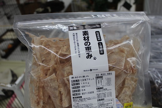 わんちゃんにもご馳走を!! 犬猫のこと 2016年12月24日 昨日、 「ラブラドールレトリバー」の“おぢさん(仮)”の 朝のお世話をしていましたところ、 おぢさん(仮)の痛恨のヘッドバッドを アゴに喰らってしまい、 ガチでアゴが1cmくらい左にずれたような気がしてなりませぬ。 こんばんは、店長です ゜(゜´Д`゜)゜うゎぁん そんな哀しみの中年男性は無視して、 本日はワンコさんのおやつのご紹介です。 その慈愛、聖母の如し 弊社常務J子さま より届きました、 ワンコさん用のおやつ!! 「素材の恵み」 ワンコさんの大好物たちを干したおやつです スペアリブ。 七面鳥アキレス。 砂肝。 手羽先。 どれも大変おいしそうですが、 ワタクシの1番のオススメは~ 鶏皮!! こちらと手羽先は表面がカリっと焼いてあり、 まるで揚げたかのような質感になっており、 超絶おいしそうですヾ(´ρ`)ノ゛ワーイ 塩かけて食したら、人間が食べてもうまいレベルだと思われマースー ※個人的意見ですので、お試しの際は自己責任でお願い致します ぜんぶ大容量となっておりますので、 中型や大型のワンコさんにもオススメです お店の一番目立つところで販売しておりますので、 ぜひぜひお家のワンコさんの クリスマスプレゼントやお年玉用にいかがでしょうか?? ご来店お待ちしております ~お知らせ その1~ ★年末年始の営業時間★12月31日・1月1日・1月2日はいつもより2時間早く 18時閉店になります。 1月3日から通常通り、20時までの営業になります。 お客様には大変ご迷惑をおかけしますが、ご理解の程よろしくお願いいたします。 ~お知らせ その2~ 只今、当店ではアルバイトさんを募集しております ・20~35歳の方 ・週3日~働ける方 ・生き物が大好きで、 一緒に楽しいお店作りをしてくれる方 ※未経験者の方でもOKです 募集人数:若干名 詳しくは、店長:長坂まで [6回]
